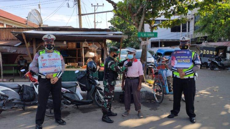 Dalam sosialisasi Protokol kesehatan personil Satlantas dan TNI menghimbau agar tidak mengabaikan Protokol kesehatan sebagai salah satu langkah pencegahan virus Covid – 19 dengan menerapkan 5M yaitu Menggunakan Masker, Mencuci Tangan, Menjaga Jarak, Menghindari Kerumunan, dan Mengurangi Mobilitas.