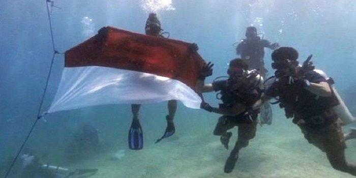Pengibaran Bendera Merah Putih di dasar laut juga dilakukan pada tahun lalu namun tidak mengurangi khidmatnya pelaksanaan upacara bendera di bawah laut.
