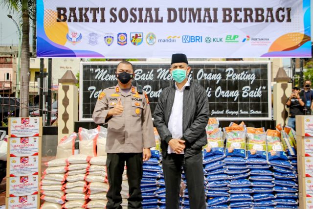 Sementara itu, Kapolres Dumai AKBP Mohammad Kholid, S.I.K berharap semoga bantuan yang diberikan melalui kegiatan Bakti Sosial Dumai Berbagi bisa bermanfaat bagi Masyarakat Kota Dumai Yang Kurang Mampu dan Masyarakat Yang Terkena Dampak Pandemi Covid-19 Diwilayah Kota Dumai.