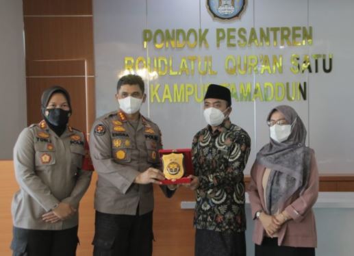 Lampung – Kabid Humas Polda Lampung Kombes Pol Zahwani Pandra Arsyad bersama tim dari Divhumas Polri dan Kapolres Metro, Yuni Iswandari Yuyun bersilahturahmi ke Ponpes Roudlatul Qur’an 1 Kampus Tamaddun di Kota Metro.