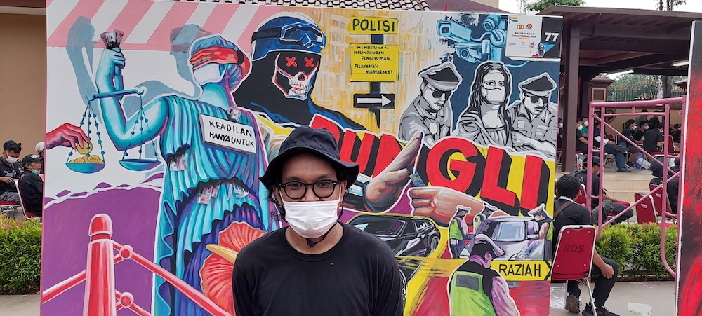 JAKARTA – La Ode Umar menjadi pemenang Bhayangkara Mural Festival 2021. Pelukis mural asal Jakarta itu membawa piala Kapolri, sertifikat dan uang tunai sebesar Rp50 juta.