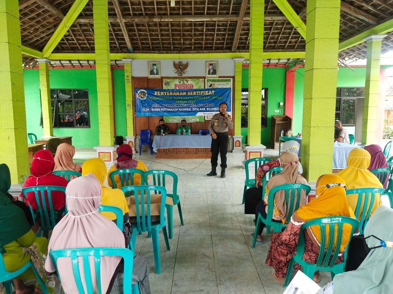 Di hadapan Kurang lebih 100 orang, di Dampingi Kepala Desa Setempat dan Ramil Ngambon berikan sosialisasi bencana alam karena musim hujan sudah datang, meminta warga masyarakat untuk lebih berhati hati ketika menjalankan aktifitas diluar rumah.