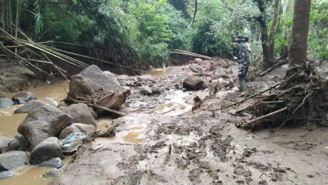 Ia menuturkan jembatan yang menjadi akses utama warga Desa Sukalilah rusak akibat diterjang banjir bandang, Sabtu (6/11) sore. Akibatnya kendaraan tidak bisa lewat dan aktivitas warga terganggu. Selanjutnya petugas gabungan dibantu warga, kata Apri, bergotong royong membangun jembatan sementara dari kayu dan bambu agar warga bisa melakukan aktivitas seperti biasa. “Tadi juga anak-anak sekolah sudah bisa lewat,” katanya.