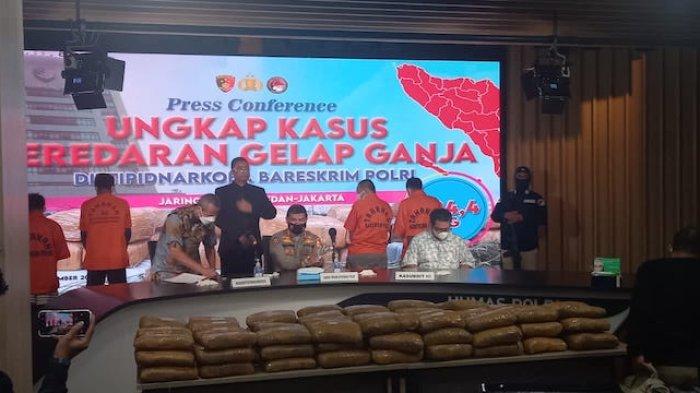 JAKARTA – Direktorat Tindak Pidana Narkoba Bareskrim Polri mengungkap peredaran narkoba jenis ganja jaringan Aceh-Medan-Jakarta seberat 224,4 Kg.